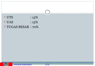 Industrial automation involves replacing human labor with machines and technology in industrial processes and manufacturing. It allows for increased efficiency, precision, and safety. Key aspects of industrial automation include open and closed loop control systems, continuous and discrete manufacturing processes, and hierarchical control architectures. Automation is widely used across various industries like power generation, manufacturing, storage and transportation to optimize processes, reduce costs, and improve quality and safety. The data needs of automated plants have grown enormously, requiring advanced computing and networking capabilities to manage all process variables.