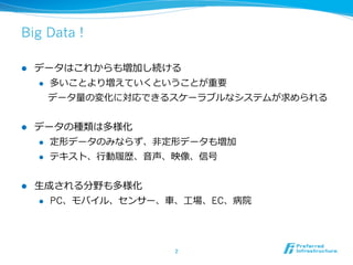 l ⼩小さいデータから⼤大きなデータの処理理まで同じシステムで処理理