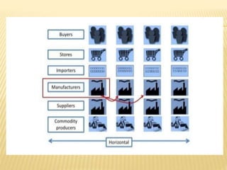 This document defines integration as combining two or more things into one. It discusses two types of integration: horizontal and vertical. Horizontal integration involves combining businesses that operate at the same level of the production process, such as when an automobile manufacturer acquires a sport utility vehicle manufacturer. Vertical integration involves controlling upstream or downstream stages of production, such as when a company owns suppliers that provide inputs or subsidiaries involved in marketing. Examples of each type are provided.