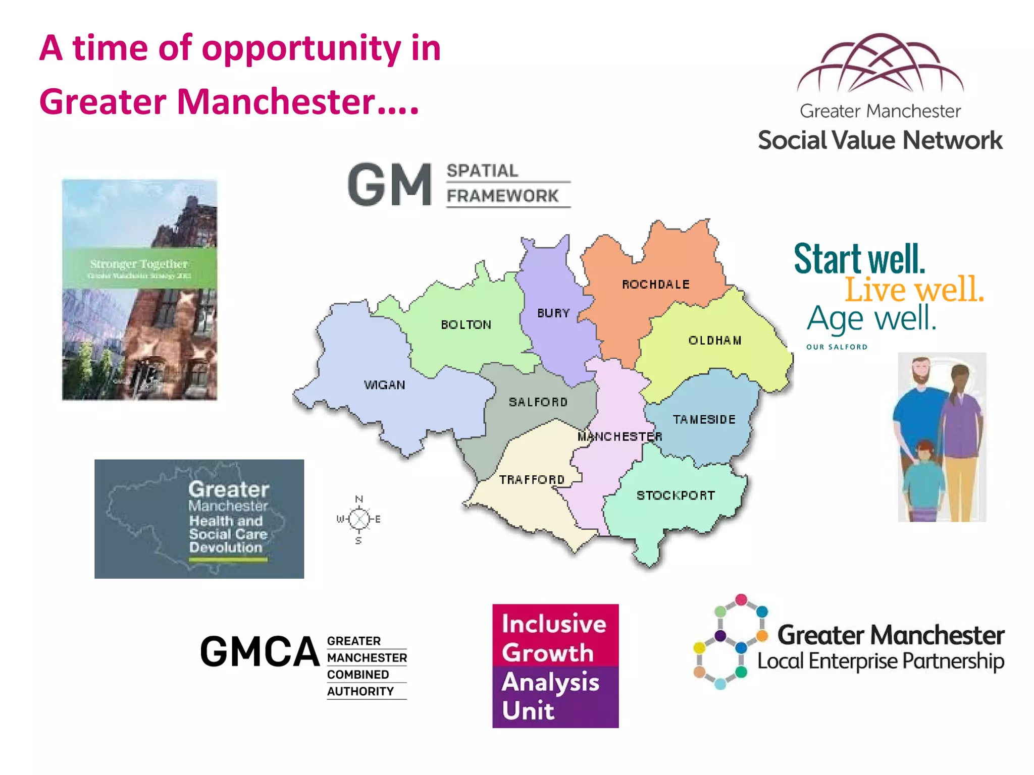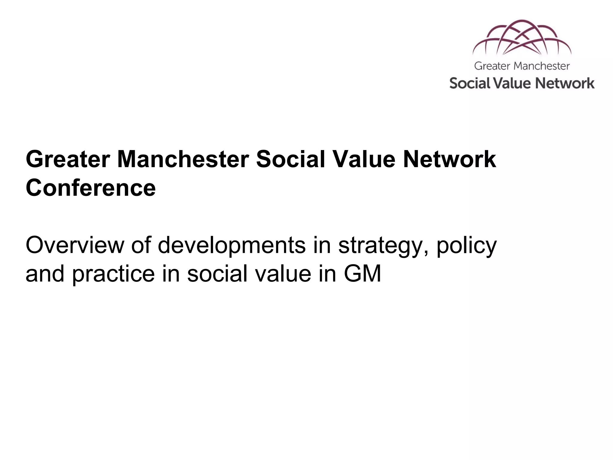 The Greater Manchester Social Value Network Conference highlights strategic developments in social value across the region, emphasizing partnerships with socially responsible businesses and commitments to ending in-work poverty and establishing a living wage employer framework. Key initiatives include a social value workstream in health and care commissioning, improved understanding of social value in procurement, and a renewed anti-poverty pledge from local authorities. The conference calls for collaboration and sharing best practices to enhance social value delivery and reporting in Greater Manchester.