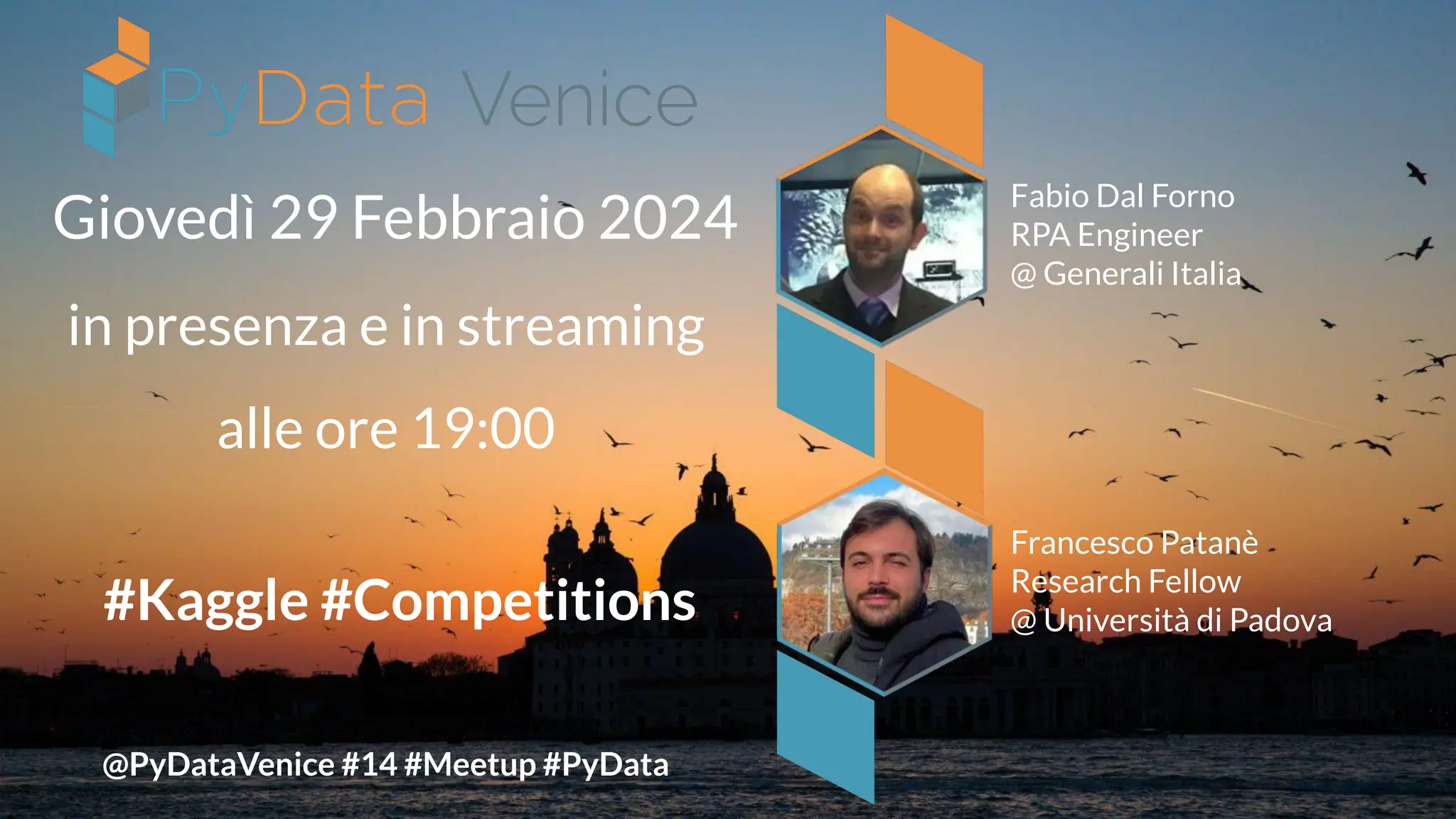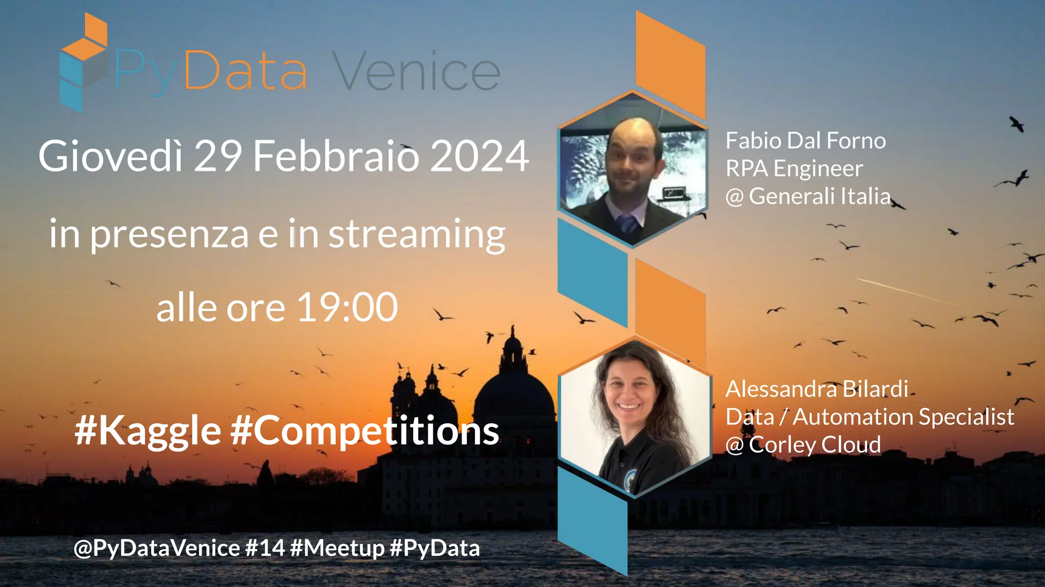 This document summarizes a PyData Venice meetup on February 29, 2024. The meetup will be held in-person and streamed live at 7:00 PM featuring talks from Fabio Dal Forno on Kaggle competitions and Alessandra Bilardi on an overview of the Kaggle platform. Kaggle is a platform for machine learning competitions and projects with over 17 million users worldwide and datasets, models, and discussions. The document outlines Kaggle's history and growth, resources available on the platform, and how it can be useful for learning feature engineering and algorithm tuning through real projects.