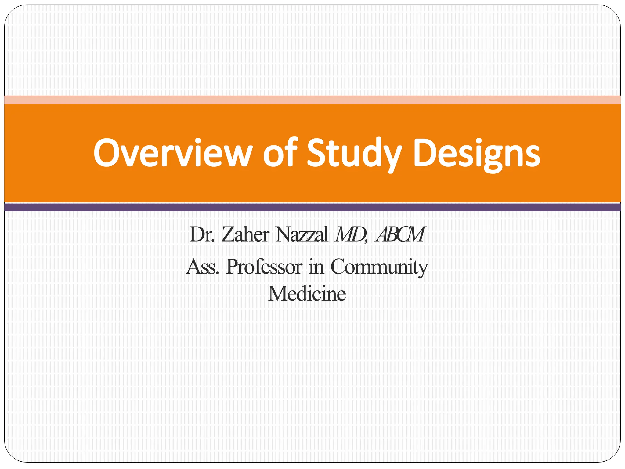 The document provides an overview of various study designs in epidemiology, detailing different types of research methods including experimental and observational studies. It discusses the goals of research, strengths and limitations of different designs, and emphasizes the importance of understanding the temporal relationships between exposure and outcomes. Key concepts such as case reports, cohort studies, randomized controlled trials, and methods of data collection and analysis are also covered.
