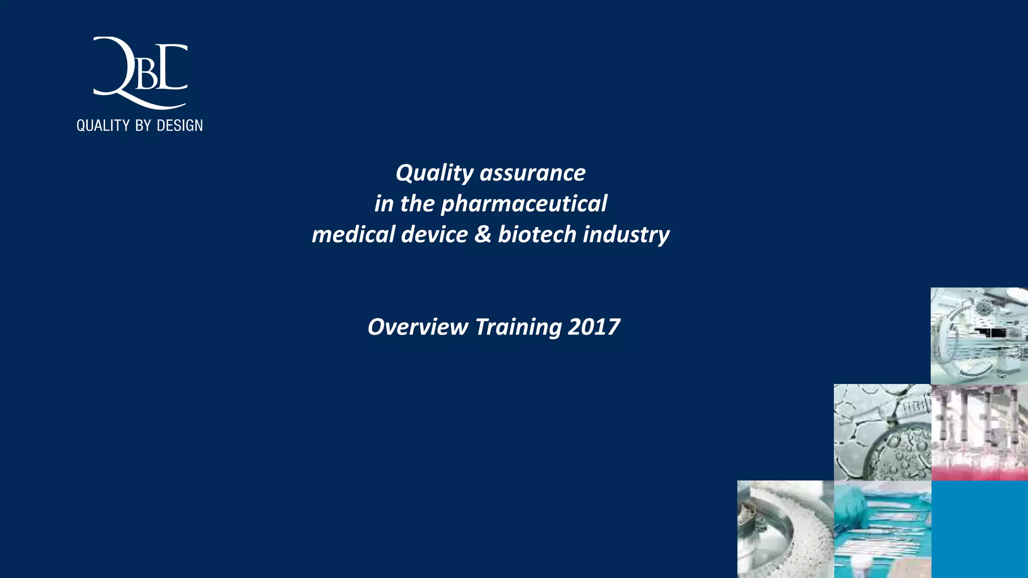 This document provides an overview of training courses offered by QbD Academy in 2017 related to quality assurance in the pharmaceutical, medical device, and biotech industries. QbD Academy offers both on-site and online training courses on various topics including auditing, quality management systems, good manufacturing practices, validation, and regulations. The training courses range from half-day to multi-day sessions and cover the objectives, content, duration, and location for each course. Contact information is also provided for QbD Academy.