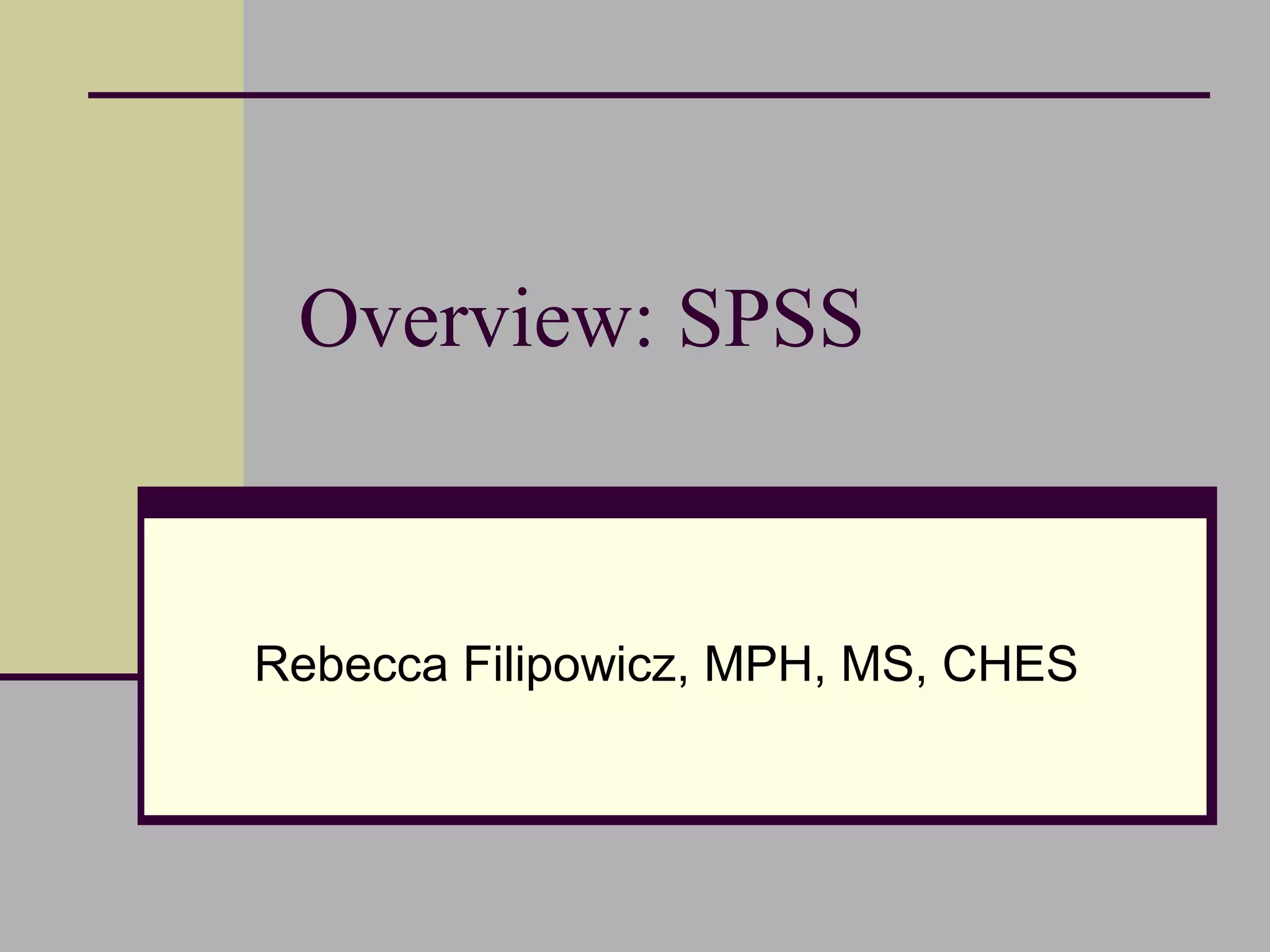 SPSS is a statistical software package used for data management and analysis. It allows users to enter and manipulate data, conduct a wide range of statistical analyses, and generate graphs. SPSS files come in three types: .SAV files contain the data, .SPO files contain output, and .SPS files contain syntax. The data editor interface allows users to view, enter, edit, and sort data. It also enables data manipulation through functions like computing new variables and recoding existing ones. SPSS can be used to produce basic descriptive statistics, frequencies, cross-tabulations, and more advanced analyses like correlations, t-tests, regression and ANOVA. Syntax files allow users to save and re-run analyses.