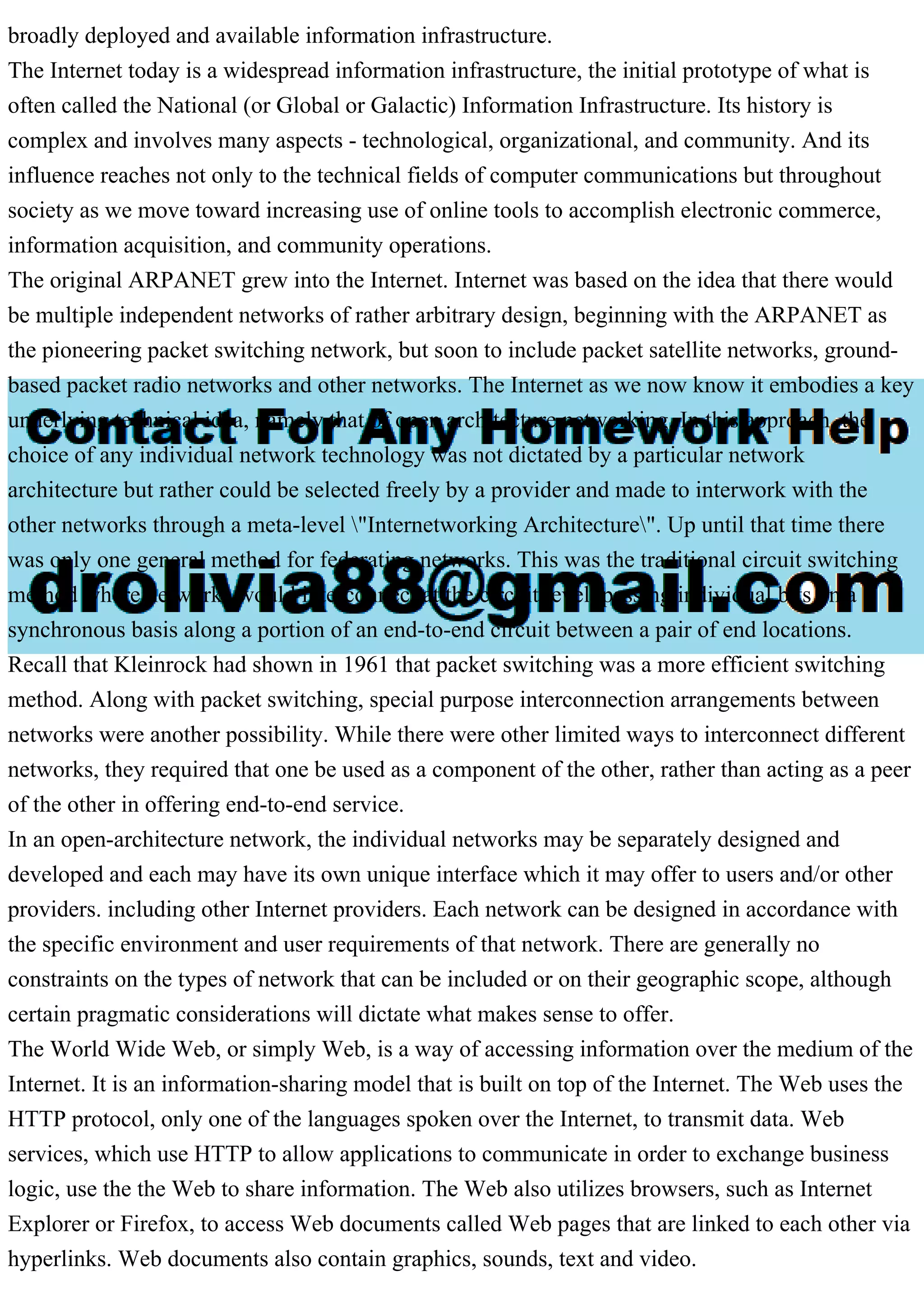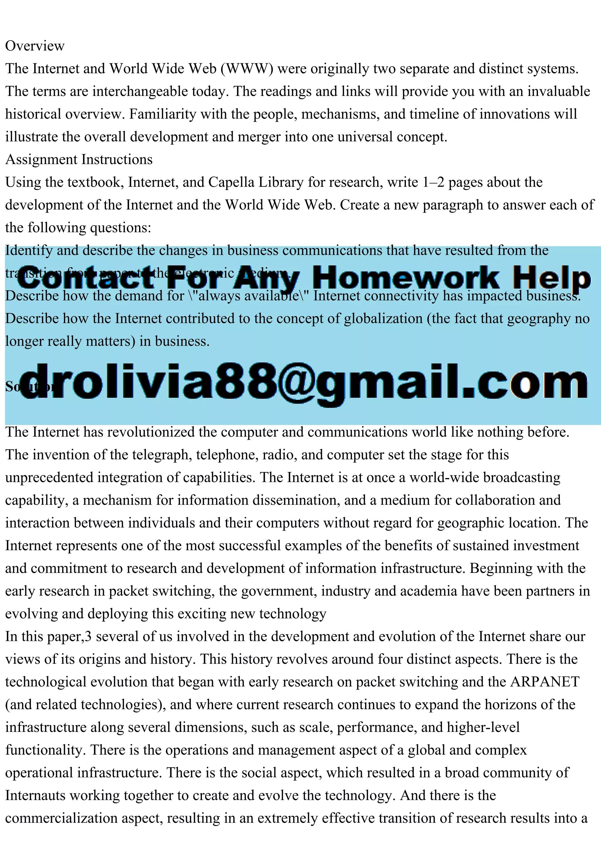 The document provides a historical overview of the development and evolution of the internet and the World Wide Web, discussing their distinct origins and eventual merger into a powerful global information infrastructure. It highlights the impact of the internet on business communications, globalization, and mass media, while also addressing issues of access and inequality faced by developing nations. The internet has revolutionized various aspects of society and commerce, facilitating global interactions and information sharing, although challenges remain in achieving equal access for all.