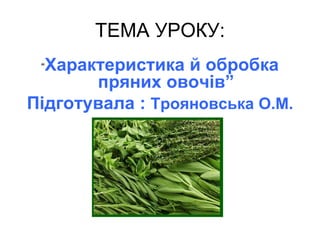ОБРОБКА ПРЯНИХ ОВОЧІВ