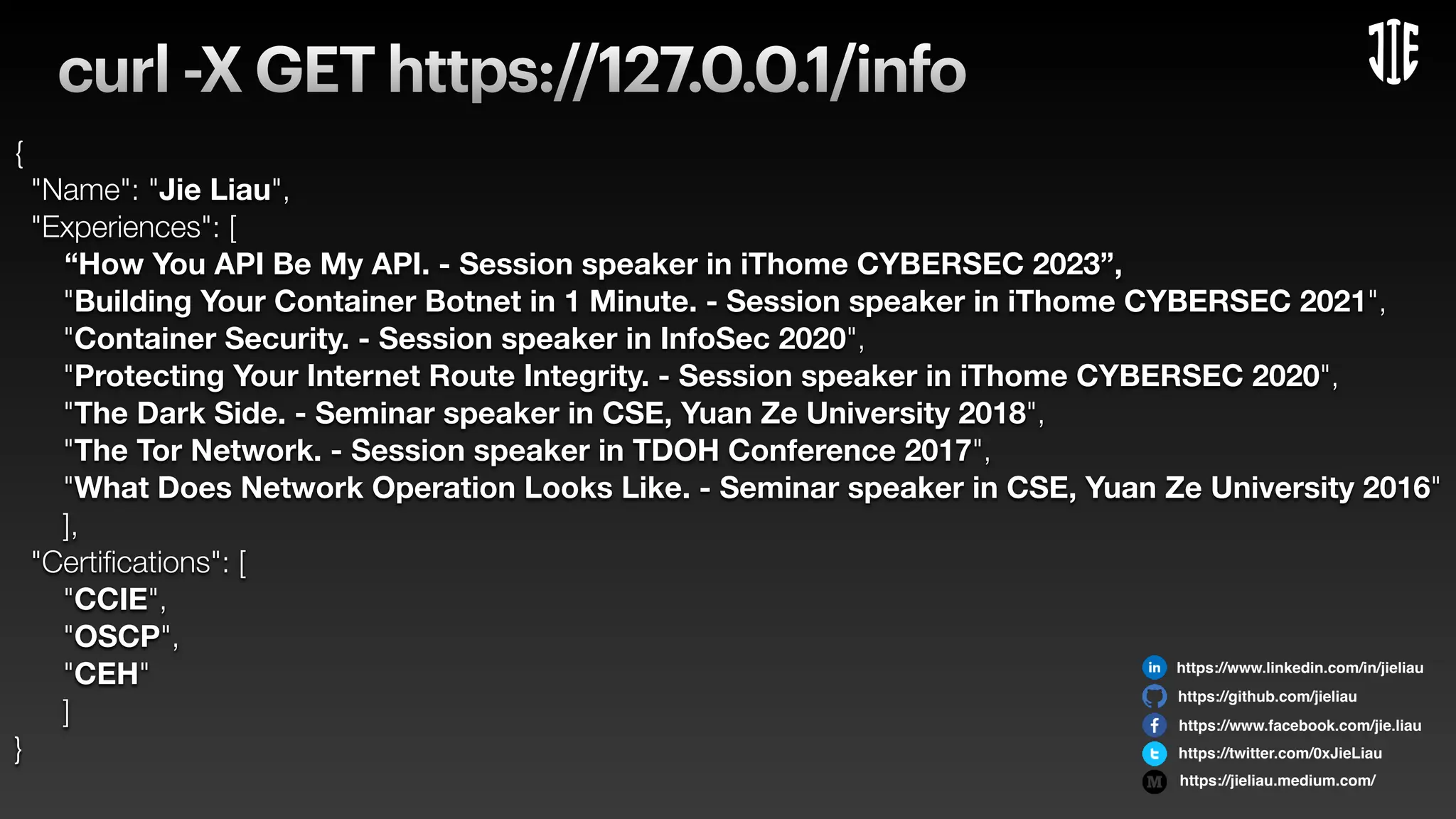 Jie Liau gave a presentation on API security. The presentation covered how APIs have become a primary attack vector, the OWASP API Security Top 10 risks, real world API attacks on companies like Coinbase, T-Mobile, and Instagram, and tools for testing API security like Postman and Burpsuite. It also provided details on API security issues like broken authentication, authorization, inventory management, and server side request forgery. The goal was to educate attendees on the growing API attack surface and best practices for securing APIs.