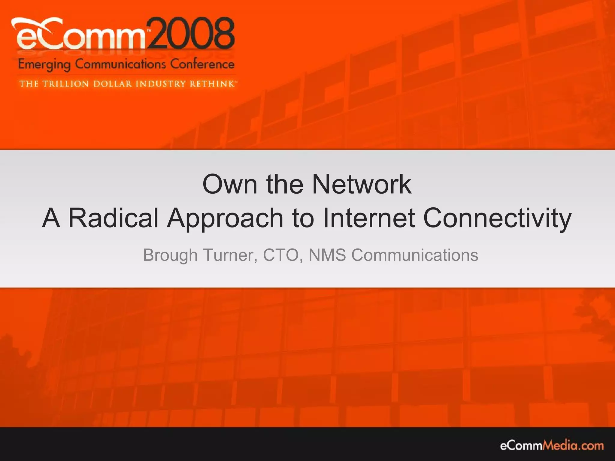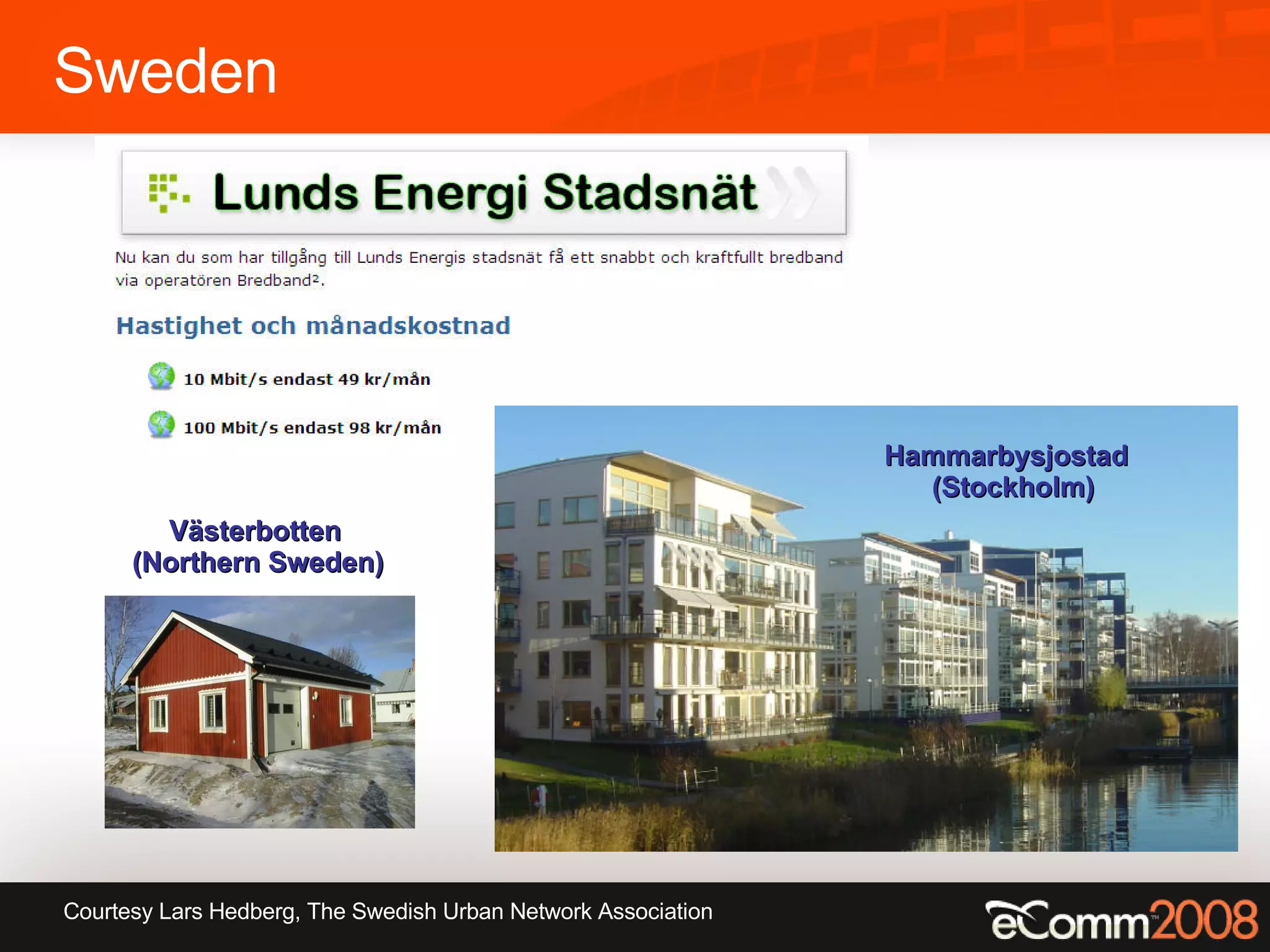 This document discusses approaches to internet connectivity and ownership of network infrastructure. It presents the model used in Sweden where municipalities or community associations own dark fiber networks that provide high speed internet access at affordable rates. It contrasts this with the situation in the US where internet access is often provided through regulated monopolies or bundled cable packages. The document argues that communities could consider models where they own or control their own dark fiber networks rather than relying on private companies.