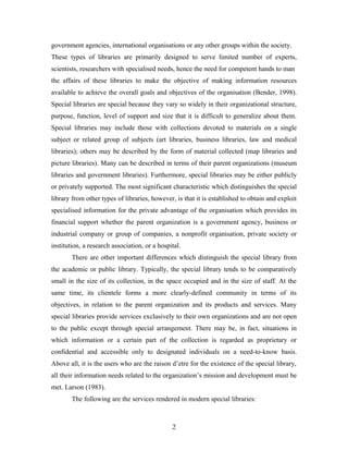 Specifically, it discusses how capacity building involves acquiring skills and knowledge to improve performance. It also explains that special libraries serve specialized information needs and require competent staff. Further, it outlines some objectives and research questions for a study on capacity building programs in special libraries in Oyo State, Nigeria.