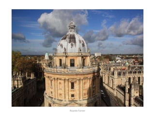 The document is about Ricardo Forner's visit to Oxford in November 2013 and describes several landmarks and buildings in Oxford including the Bodleian Library, Divinity School, Carfax Tower, Sheldonian Theatre, Bridge of Sighs, Ashmolean Museum, St Mary's Church, and views from St Mary's Tower. Ricardo Forner's name is repeatedly mentioned throughout.