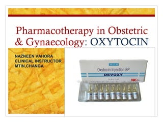Oxytocin is a hormone that contracts smooth muscle to help expel the fetus during delivery and eject breastmilk. It is released naturally during labor and delivery in response to cervical and nipple stimulation. It can also be administered synthetically through intravenous or intramuscular injection to induce or augment labor. Potential adverse reactions include seizures, hypotension, and uterine rupture. Proper assessment of the patient's risk factors and careful titration of dosage are important when using oxytocin for labor induction or augmentation.