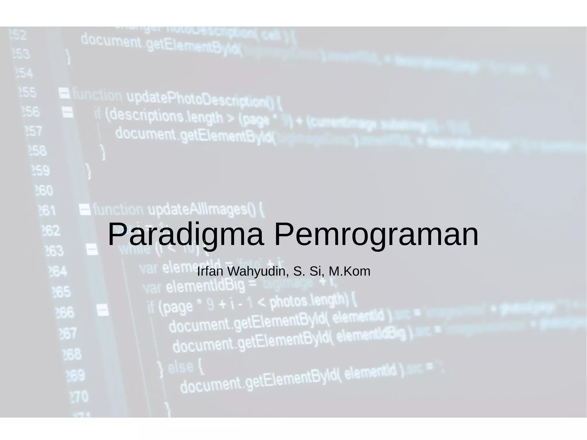 Dokumen ini membahas berbagai paradigma pemrograman, termasuk pemrograman terstruktur dan pemrograman berorientasi objek, serta pentingnya menghindari penggunaan pernyataan goto untuk mencegah 'spaghetti code'. Paradigma pemrograman terstruktur memudahkan pengujian, pemahaman, dan pemeliharaan, sementara pemrograman berorientasi objek menekankan pada abstraksi dan manipulasi atribut objek. Konsep-konsep utama dalam OOP meliputi enkapsulasi, pewarisan, dan polymorphism.