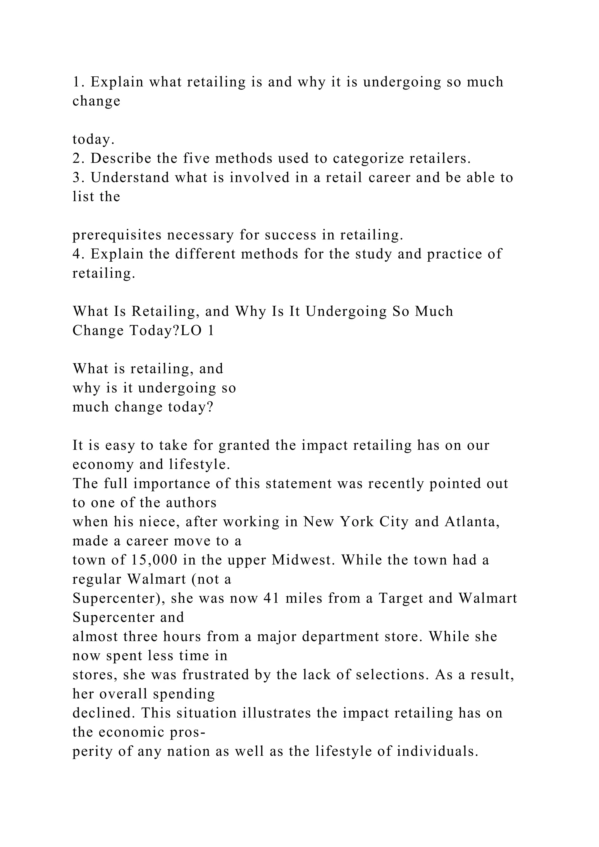 The document introduces retailing as a critical economic force in the U.S. and outlines the various changes occurring within the sector. It discusses the importance of retailing to consumer lifestyle and economic growth, as well as the impact of e-tailing on traditional retail practices. Additionally, it examines the role of major retailers like Walmart in shaping the industry and their contribution to society despite facing criticisms.