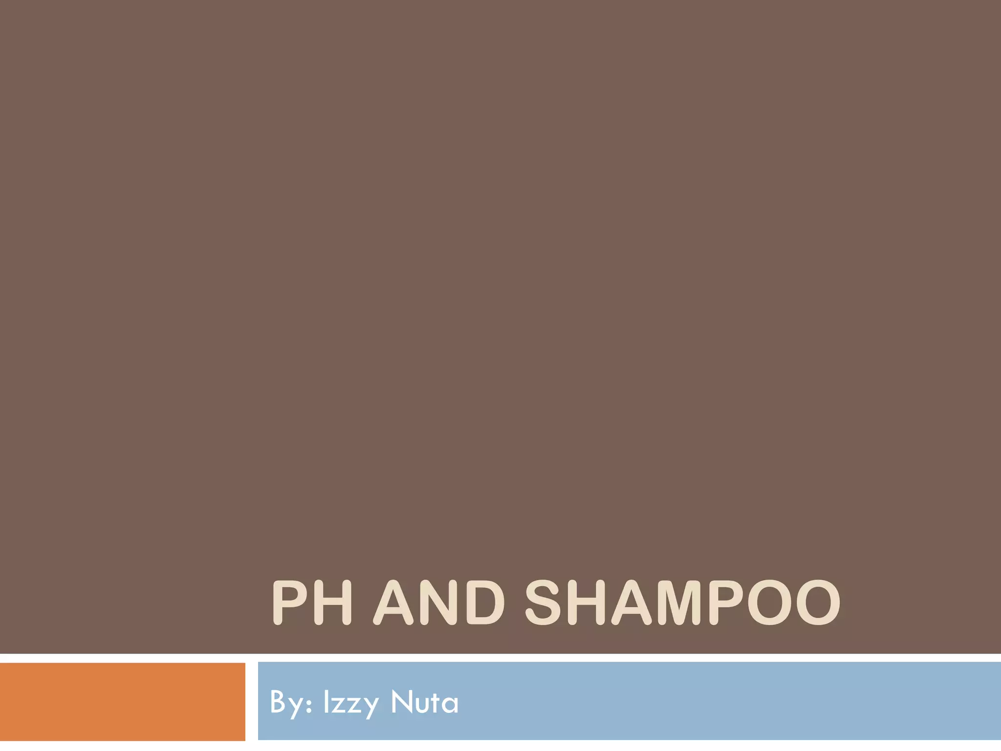 The document discusses hair structure, the function and chemistry of shampoo, and how pH impacts hair and shampoo effectiveness. Hair is made of protein chains and is dead after leaving the root. Shampoo's main ingredients are water and surfactants, which help clean hair by stripping oil. The pH of hair is 4.5-5.5, while shampoo pH ranges from 5-11; a pH that is too acidic or basic can damage hair. Shampoo aims to remove dirt while maintaining the hair's natural pH balance.