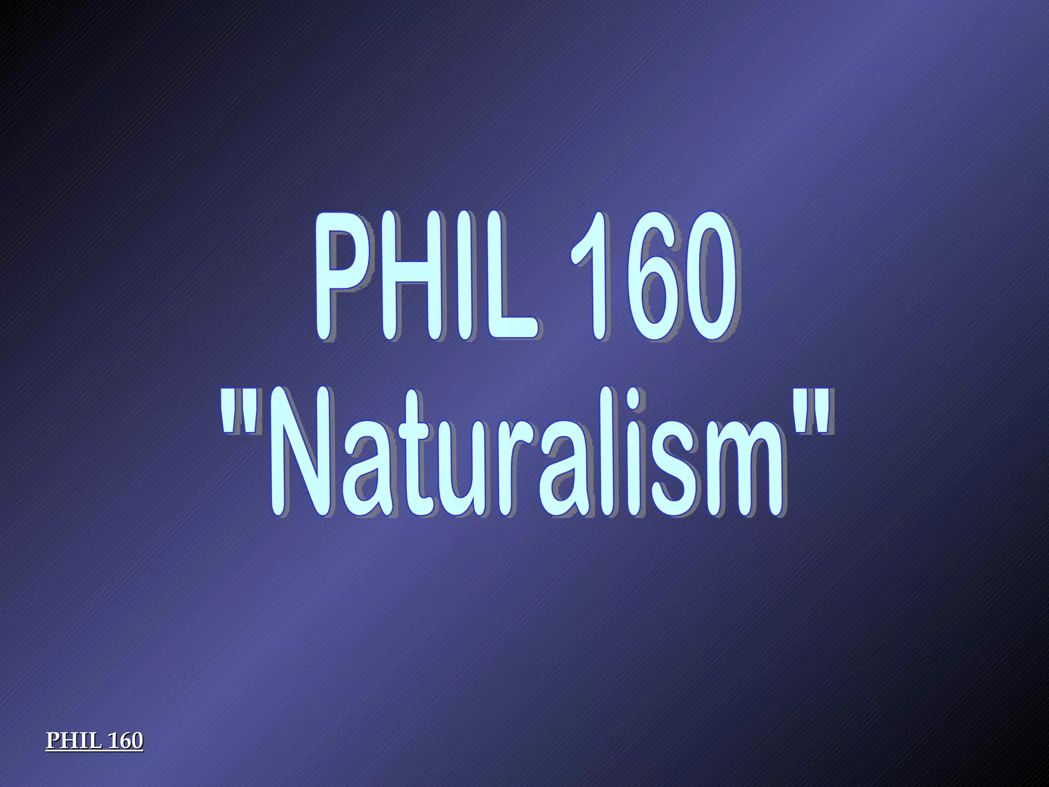 The document discusses several topics relating to naturalism as a philosophical approach: