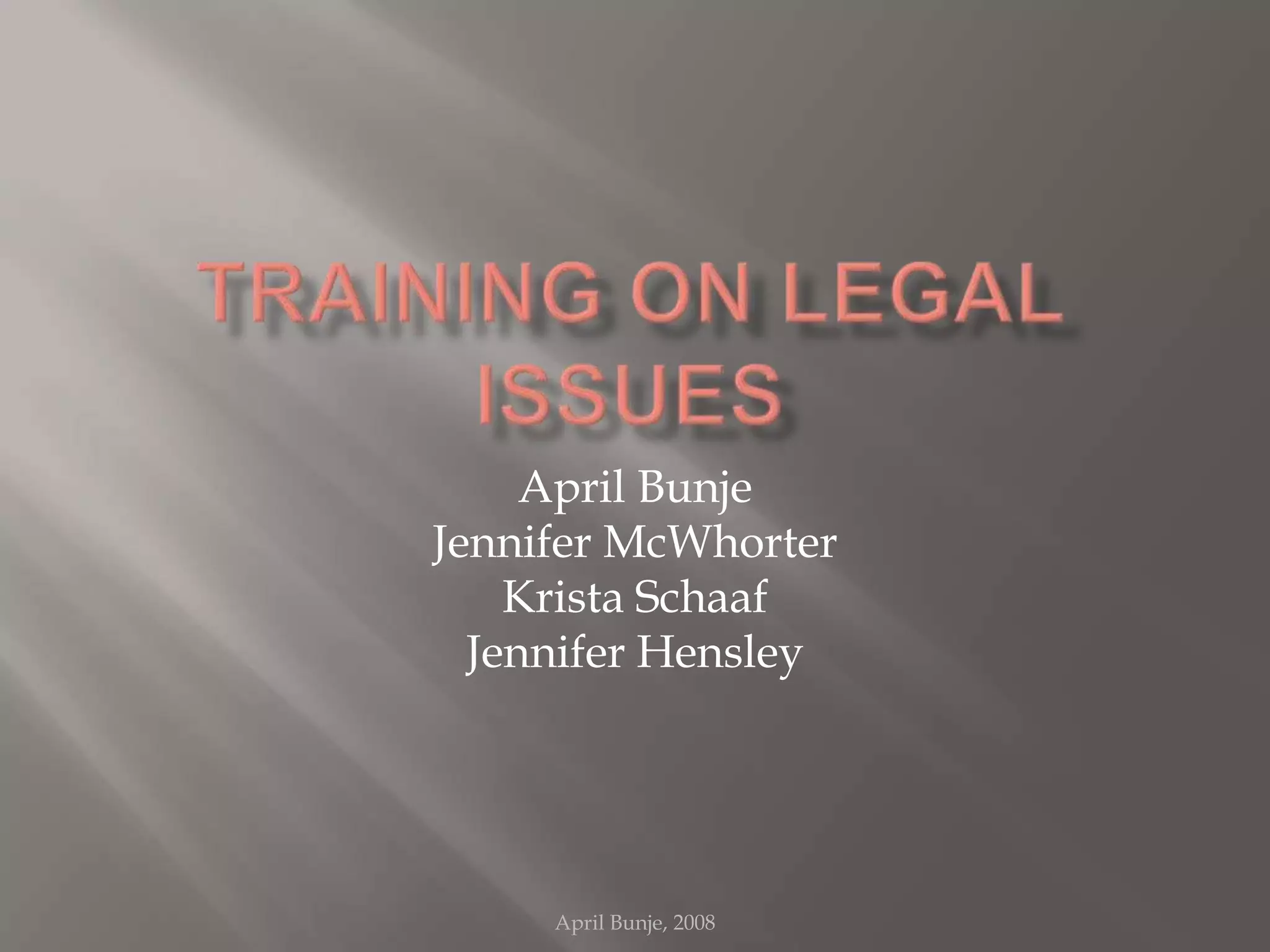 This document contains multiple sections on various legal topics presented by different authors. It includes sections on the Patriot Act, Americans with Disabilities Act, corporate scandals like Enron, vicarious tort liability, and compliance implementation at BSSL. Each section provides information and references on the given topic.