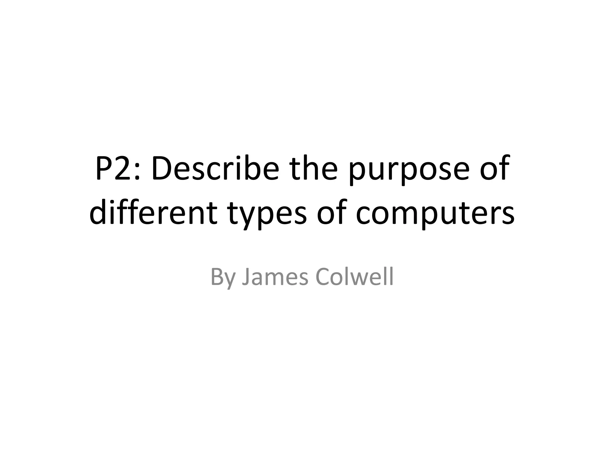 The document describes the purpose and key features of different types of computers: