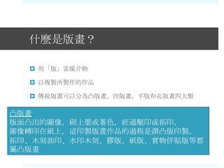 文档介绍了版画的基本概念和分类,包括凸版画、凹版画、平版画和孔版画。随后,讨论了如何从多个角度分析城市建筑的特征,并提出了一些关于城市印象和个人喜好的问题。最后,通过具体城市案例引导读者思考和观察城市的特点。
