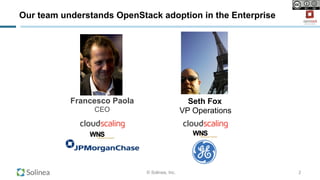 The document discusses strategies for accelerating the adoption of cloud computing, specifically focusing on PaaS (Platform as a Service) within OpenStack environments. It highlights the importance of agility, cost savings, and operational efficiency for enterprises transitioning to cloud solutions. Key principles and success factors are outlined to support organizations in developing a developer-centric culture and effectively measuring the success of their cloud initiatives.