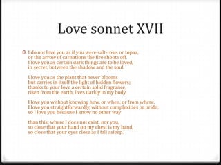 Pablo Neruda's love sonnet describes his love in three sentences: