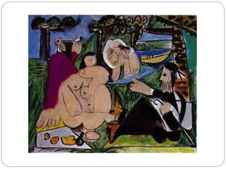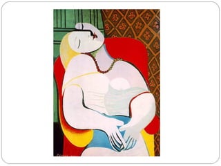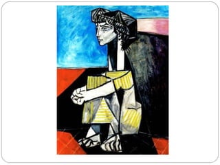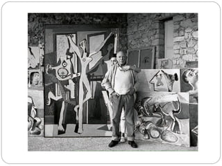 Pablo Picasso was a highly influential Spanish painter and sculptor. He showed artistic talent from a young age and had his first exhibition at age 13. During his long career, Picasso helped pioneer cubism and collage, radically changing European painting. He had many relationships and children with different women. Picasso was prolific until his death at 91, leaving over 50,000 works of art that demonstrate his extraordinary creativity and revolutionary approach to art.
