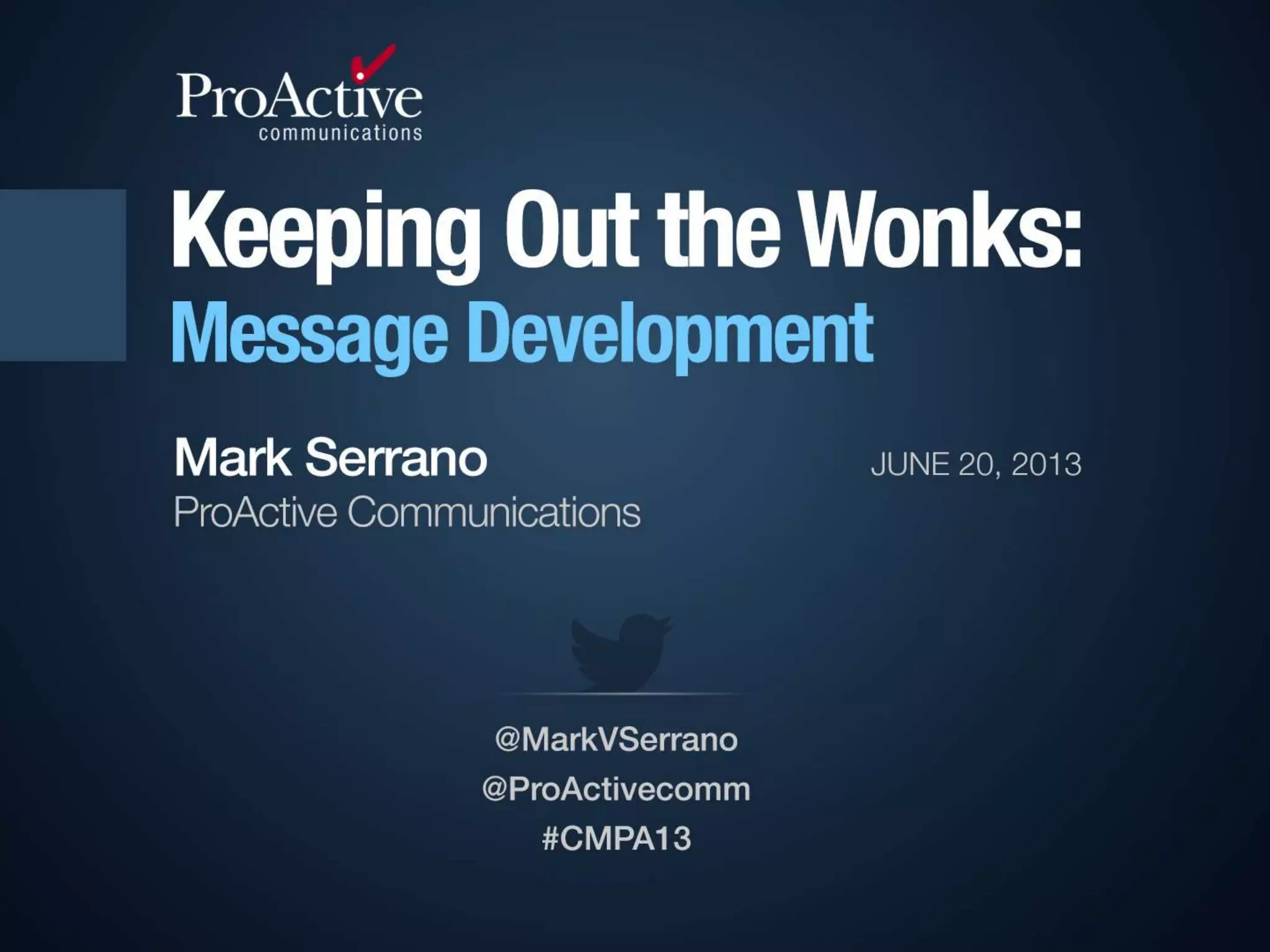 ProActive Communications is a full service strategic communications firm founded in 1996 that provides public affairs, digital PR, and video production services to Fortune 500 companies and government entities. The presentation provides 10 tips for crafting effective messaging for policy issues, reputation management, and increasing visibility. The tips include gathering internal and external information, defining objectives, using clear yet compelling language, applying quality control processes, translating technical information for non-expert audiences, writing extensively and concisely, testing messages with varied audiences, unifying around a single message, and visualizing the message.