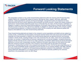 Pacer International presented an investor presentation in May 2013 that covered the following topics:
