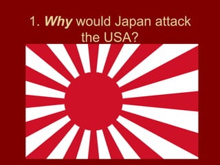 1) Japan attacked the US due to its expanding influence in the Pacific and Asia, and a belief the US was unprepared for war.
