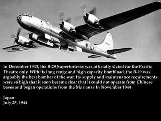 This document discusses why Japan initially attacked the US and was initially successful in the Pacific, but ultimately lost. It summarizes: