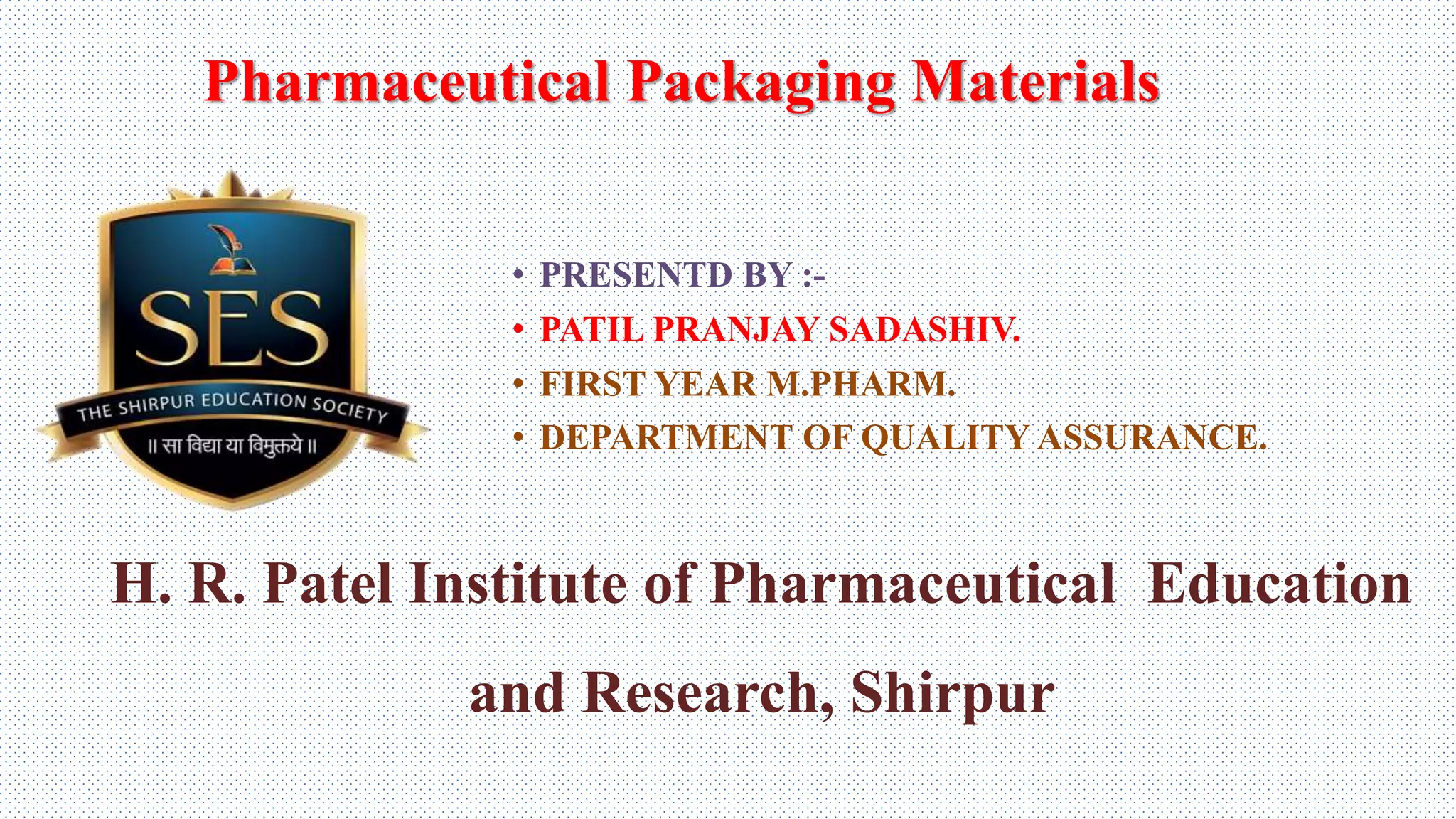This document discusses pharmaceutical packaging materials. It begins by defining pharmaceutical packaging and listing the key characteristics packaging materials must have, such as protecting the product from environmental conditions and not being reactive.
