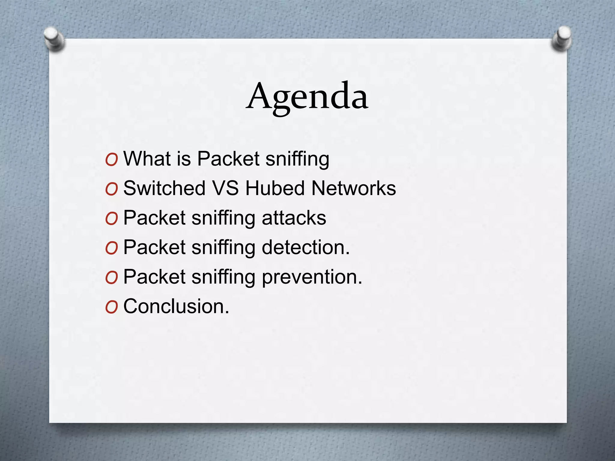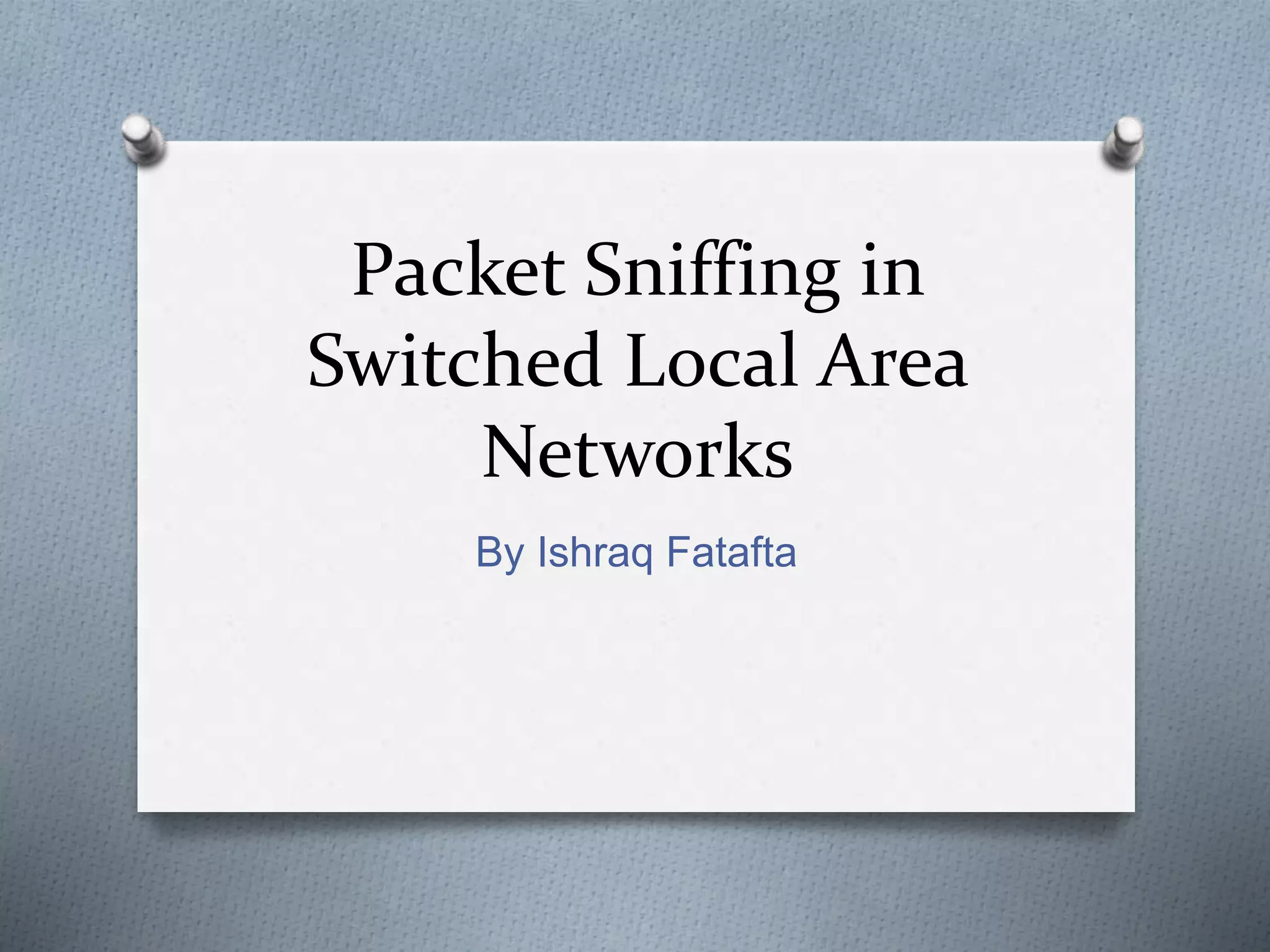 This document discusses packet sniffing in switched local area networks. It begins by defining packet sniffing and describing the differences between switched and hubbed networks. It then outlines several packet sniffing attacks like ARP spoofing and switch port stealing. The document also proposes methods for detecting packet sniffing like ARP cache poisoning and preventing it through techniques such as port security, authentication, encryption and secured protocols. It concludes by emphasizing that switched networks are still vulnerable to sniffing and that while no solution is perfect, networks can be protected.