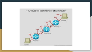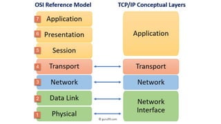 The document outlines key networking concepts, including the OSI model and the roles of the application, network, and data link layers. It details how data packets navigate through various network layers, the significance of IP addressing (both public and private), and the DHCP process for dynamic IP assignment. Additionally, it provides an overview of Linux command-line tools for network configuration and management.