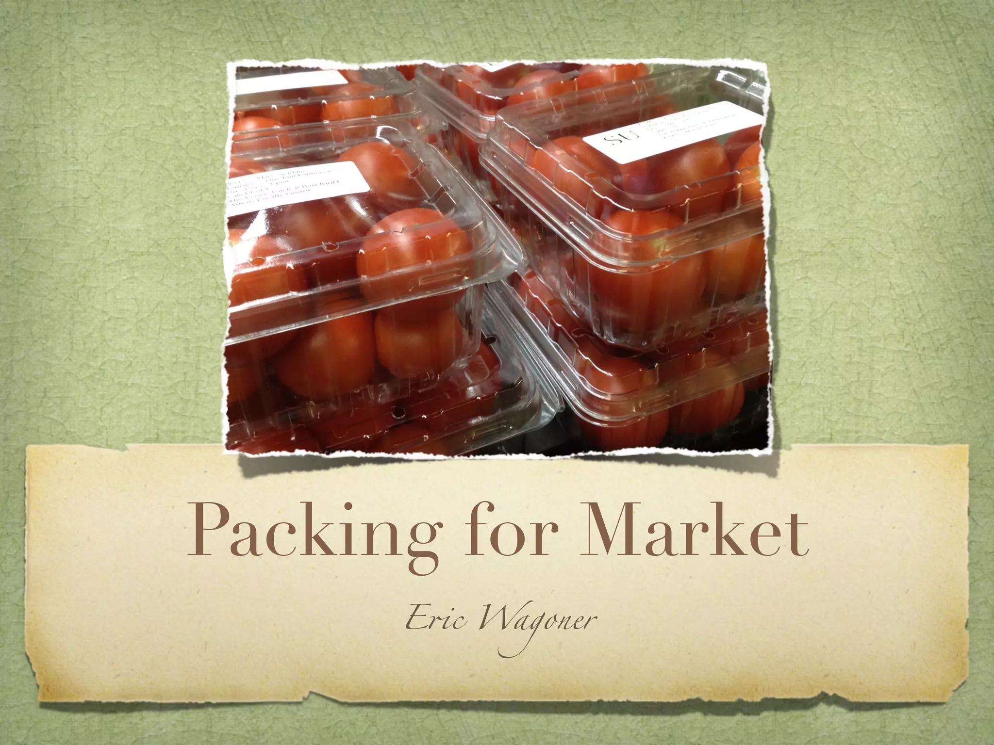 The document provides tips for farmers market vendors on packing produce for market, including using breathable bags to package items, washing only when necessary, controlling temperatures during transport, and using appropriate packaging like clamshell containers or paper bags. It recommends online resources for finding packaging supplies and notes the writer's experience managing a farmers market for 18 years.