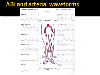 The document discusses peripheral vascular disease (PVD) and venous thromboembolism (VTE). PVD is underdiagnosed and involves atherosclerosis in arteries outside the heart and brain. Common symptoms include leg pain with walking. VTE has a high prevalence in hospitalized patients, especially those with reduced mobility, and often goes undiagnosed. Ultrasound is useful for diagnosing PVD and Doppler criteria can estimate stenosis. Low molecular weight heparin reduces the risk of VTE compared to unfractionated heparin in heart failure patients.