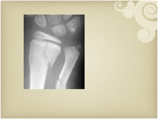 Prof. Muhammad Shahiduzzaman discusses fractures in pediatric patients. He notes that 60% of the population in Bangladesh is under 20 years old, and fractures account for 15% of injuries in children. Fracture patterns differ from adults due to children having stronger ligaments, more cartilage, and growth plates that allow for remodeling. Common fractures include buckle fractures, greenstick fractures, and Salter-Harris fractures of the physis. Treatment depends on the fracture type but often involves closed reduction and casting, with surgery reserved for more complex cases. Children generally heal faster than adults from fractures.