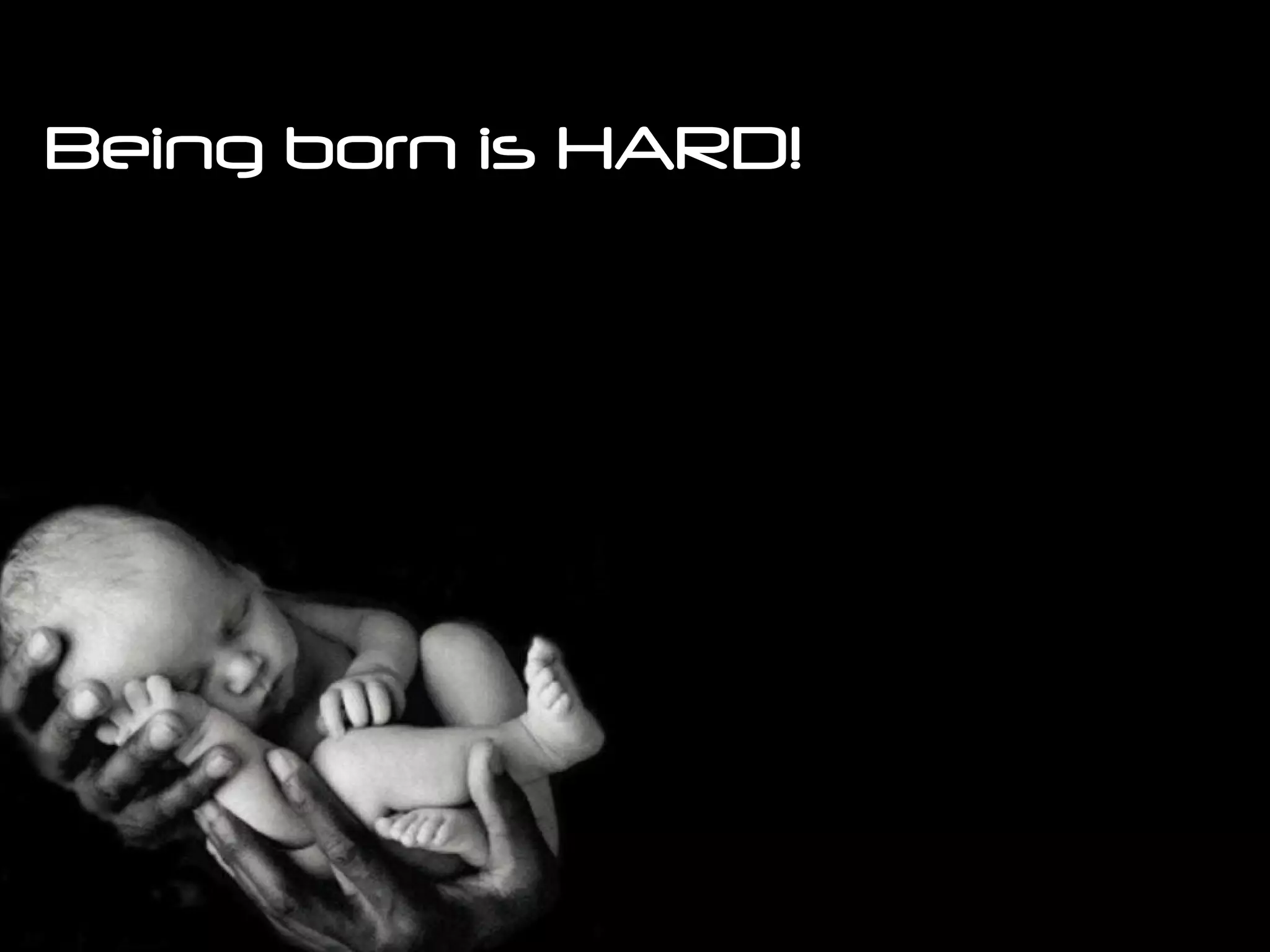 Being born can be traumatic as babies go from a safe environment in the womb to a cold, bright delivery room. Mechanical interventions during birth like forceps or vacuum extraction can cause spinal injuries called subluxations in newborns from pulling and twisting. Subluxations in infants can result in persistent crying, difficulty feeding, constipation, colic, and reluctance to sleep on their back. The document discusses that chiropractic care is safe for newborns and infants, using gentle pressure similar to testing a tomato, and can help address any issues caused by birth injuries to the spine.