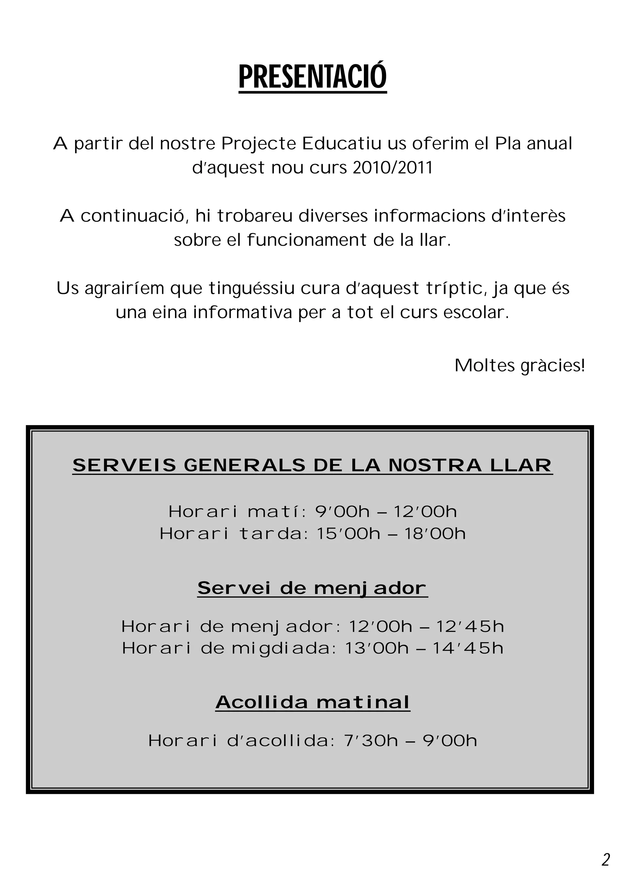 A partir delnostre Projecte Educatiu us oferim el Pla anual