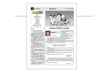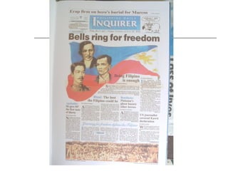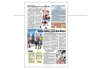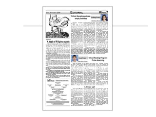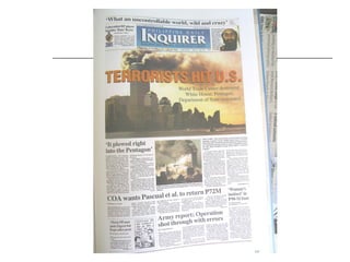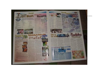 The document discusses principles of page design and newspaper layout. It defines page design as the arrangement of illustrations, photos and text on a page. Effective page design considers the size and type of newspaper, balances different elements, and draws the reader's eye in strategic ways. The document outlines various layout techniques like symmetrical, focused, broken column and contrast designs. It provides tips for effective inside page, editorial, feature and sports page layouts. Key principles emphasize ranking stories, using a dominant visual element, varying sizes and orientations of graphics, and using white space purposefully.