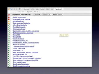 The document outlines web development best practices for optimizing website performance, emphasizing that improvements in loading times can lead to increased traffic and revenue. It highlights key strategies such as minimizing HTTP requests, optimizing caching, and using asynchronous loading for scripts to enhance user experience. Additionally, various tools, benchmarks, and examples from companies like Amazon and Google are provided to illustrate the impact of performance on business outcomes.