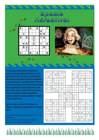 Il primo numero del giornalino d’istituto è stato pubblicato grazie al contributo di studenti di diverse classi. Quest'anno è stato introdotto un concorso d’arte e di scrittura creativa sul tema della 'libertà', con la promessa di pubblicare i migliori lavori nel prossimo numero. Per ulteriori informazioni, è possibile contattare Luca Corallo e Clara Anicito.