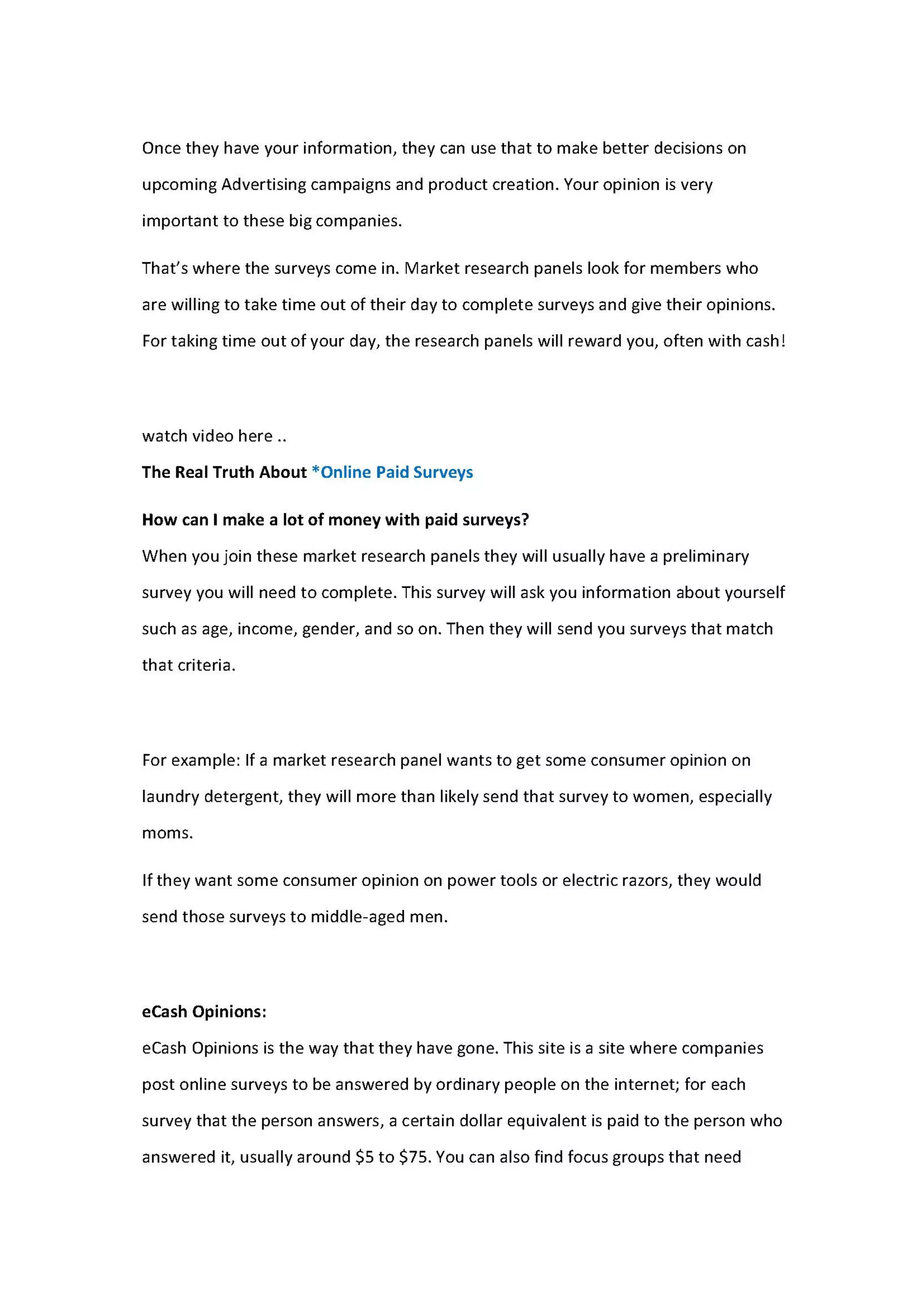 This short document recommends copying a link provided in the description and pasting it into a browser to access opportunities to earn cash from surveys and opinions. It suggests the ability to earn money by participating in paid surveys online.
