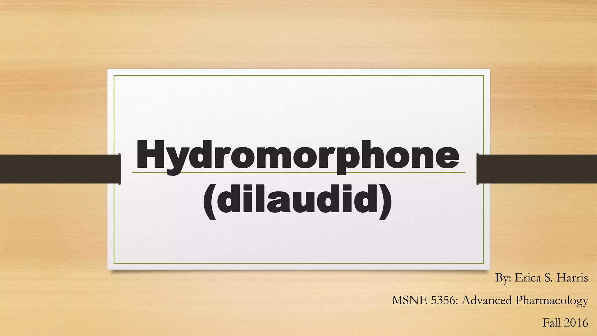 Hydromorphone is an opioid analgesic used to treat cancer pain. It works by binding to opioid receptors in the brain to increase pain tolerance. Common side effects include nausea, vomiting, dizziness, and constipation. It can interact with other CNS depressants and cause respiratory depression. Careful monitoring is needed when prescribing to patients with liver or kidney impairment or those taking interacting medications.