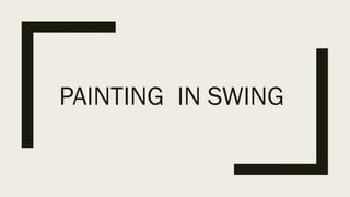 The document introduces Swing, a Java library for building graphical user interfaces, highlighting its component-based approach and flexibility. It discusses the painting mechanism in Swing, detailing the key methods used for painting, including paintComponent(), paintBorder(), and paintChildren(), while emphasizing the importance of overriding paintComponent() for custom drawing. A code example demonstrates how to implement custom painting in a Swing application.