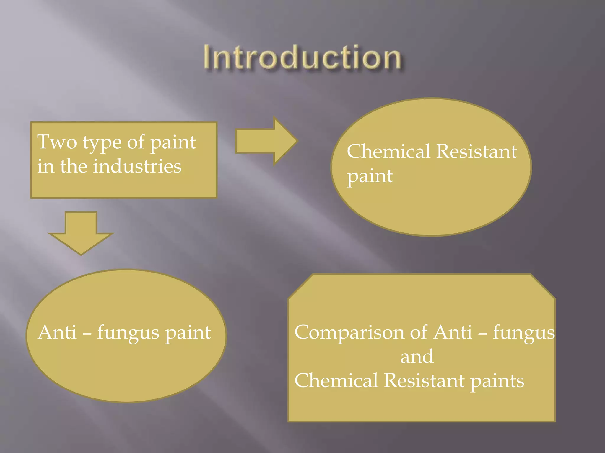Anti-fungus paint is used in areas prone to mold growth like bathrooms and basements. It contains antimicrobial ingredients to prevent mold growth on painted surfaces. Chemical resistant paint is used to protect surfaces from attack by aggressive chemicals. It contains agents to resist chemicals and is used in areas like floors. Some examples of anti-fungus paint include Rust-Oleum and Zinsser paints while chemical resistant examples include Sika Fastflor and Sikafloor epoxy coatings.