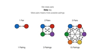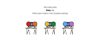 The document discusses the concept of pair programming, emphasizing its benefits, techniques, and best practices for implementation. It addresses common concerns and misconceptions about pairing, and provides resources for further learning. The importance of collaboration, productivity, and communication within teams while adapting pair programming to specific work environments is highlighted.