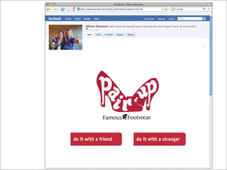 Pair-Up allows online shoppers to invite a Facebook friend to split the cost and savings of a Buy One-Get One 1⁄2 off purchase. If a shopper has no friends to Pair-Up with, they can select a total stranger from the Pair-Up Community to share the deal with instead.