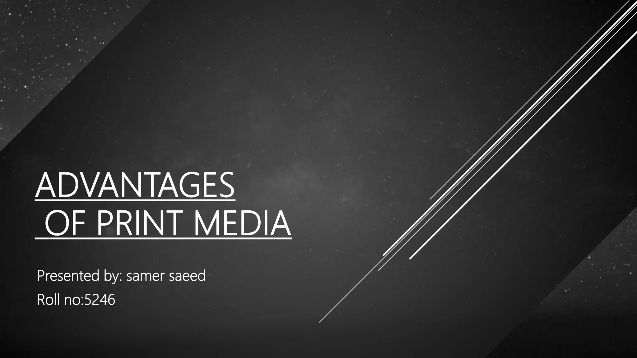 Print media has several advantages as an advertising medium. It includes newspapers, magazines, newsletters, brochures, and posters. Some key advantages are that print media is portable, allows targeting specific geographical areas, and gives advertisers control over budget and ad placement. Print also builds long-term brand awareness through magazines and newsletters which are read over time and can reach specialized audiences. Different print formats like newspapers provide widespread reach while posters provide an eye-catching display.