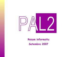 Què hem fet?Des del primer moment PAL2 ha emprès totes les accions necessàries per donar a conèixer les nostres inquietuds. Hem pres la iniciativa en els contactes amb la Generalitat per conèixer la situació del projecte i participar en el seu desenvolupament. Hem dut a terme i continuem fent totes les accions divulgatives necessàries, entre veïns i interessats, per donar a conèixer l’abast del projecte i el seu estat. Hem participat en la Mostra d’Entitats del Barri 2007 , amb un estant propi i en Festes Majors. I, també organitzem periòdicament, a peu de carrer, taules itinerants informatives. PAL2