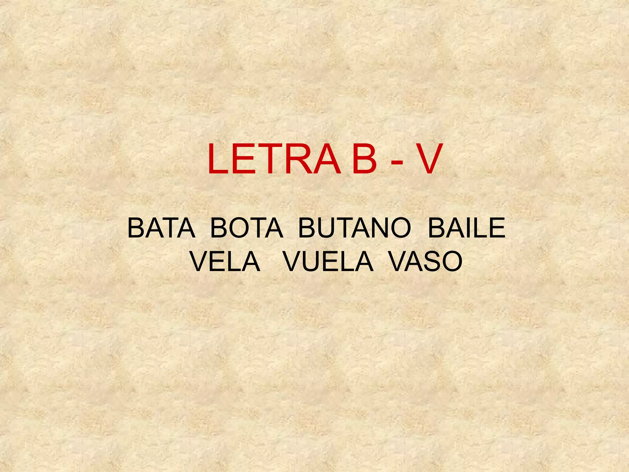 This document contains words in Spanish and their phonetic breakdowns. It presents the words "bata", "bota", "baile", "butano", "vaso", "vuela", and "vela" and maps out each letter sound by sound. It then asks the user to complete partial words by filling in missing letters.