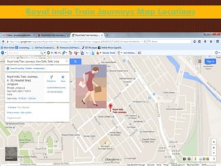Royal India Train Journeys offers a comprehensive range of travel services, including luxury train journeys, tour packages, hotel bookings, and ticketing. The document highlights several luxurious trains like the Maharajas Express, Palace on Wheels, Royal Rajasthan on Wheels, and Deccan Odyssey, noting their unique features and routes. For more information, the company can be contacted via email or phone, and their website is provided.